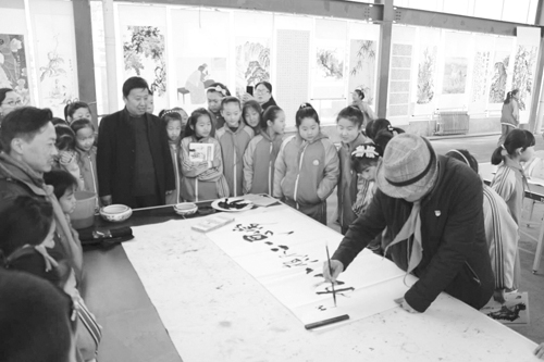 为了培养学生热爱书画,丰富学生文化生活,3月21日上午,经济开发区小学开展了首届书法名家进校园活动。山东泉城画院院长云门子先生及其弟子、青州市教育局相关领导、开发区教管办领导参与了此次活动。活动中,云门子及其弟子与开发区小学的老师和孩子们进行了一场近距离面对面的书法传承、交流活动。 “书画名家进校园”活动,搭建起了学生、教师、书画家共同参与的平台,今后学校还会定期邀请这些书画名家们来校指导,旨在促进学校教育,提高学生书画水平,丰富校园文化生活,提升教学质量。 段磊 王丹 王新军摄
