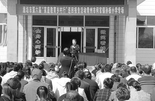 近日,潍坊家庭教育专家綦敦田教授带领公益宣讲团走进了何官镇孙板小学,为孙板小学的所有师生及学生家长进行了别开生面的讲座,用生动的案例深入浅出地分析了儿童少年的心理特征。綦教授从好家风、好家训方面进行深入细致的讲解,挖掘教育的潜力案例,传授家庭教育的成功经验,并与在场的家长进行互动,帮助广大家长树立正确的教育观,掌握科学的教育方法。整个讲座气氛热烈、形式多样,家长们受益匪浅。 蒋兴福摄