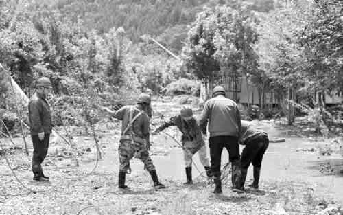 8月19日21时许,镇防汛应急指挥部接到群众电话,曹家庄村一位70多岁的大娘困在水中等待救援,镇机关干部田伟、吕长友、邵长水、王立虎、王洪培、王宁、刘家祥、王洪川等人立即赶赴现场,手拉手进入湍急的水流中将大娘救了出来,同时把在大水中抛锚的五辆小轿车合力推了出来。