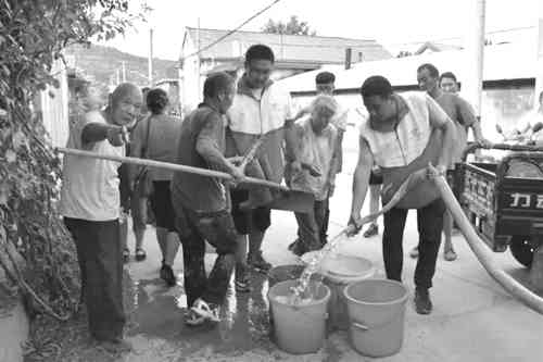 邵庄镇温庄村依山而建,这次遭受洪灾严重,村内供电变压器、生活用水水井、村路全部被冲毁,村民面临无水无电等困难。洪灾无情人有情,在了解到村民吃水难后,市规划局和山东中科嘉亿生物工程有限公司主要负责同志立即协调紧急调配了居民用水运输车,从公司厂区拉上水,为受灾村民送去生活饮用水,解决了燃眉之急。目前,正在积极协调帮助该村解决供电和出行问题。