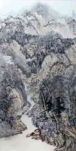 王艺燃其母亲战淑美心灵手巧,绣花艺术灿然夺目,在招远十里八村远近闻名,王艺燃耳熏目染深受影响。王艺燃的大哥王阔海更是中国新汉画艺术创始人,其独创的新汉画艺术技法获国家专利,以其独到的艺术建树而彪炳中国美术史册。这正是在王艺燃灵府之中产生对艺术的敬慕、炽爱的根本原因。近水楼台得月先之。她多次参加清华大学王阔海新汉画高研班的学习,受到其兄王阔海先生的正确指导,又加之国家博物馆特聘画师李立公先生具体山水技法的指导;坚持正脉传承,从认真学习传统技法入手,从她所喜爱的王原祈、王鉴、王翚、王时敏等技法,经营构成山水法度入手,取王时敏山体结构之严谨,王鉴青绿山冰之宛约,王晕烟树之灵动,王鉴山峦叠嶂之法度,又加之自己虔诚与真实无欺之人文性格情怀,又结合自己小时候生于斯长于斯招远山水之理解,万象皆出于心,渐次达到一种心、技、法、道合一的境界。形成一种令观者赞叹而笔墨无欺,真实感人,可游、可居、可思的小青绿山水之面貌。