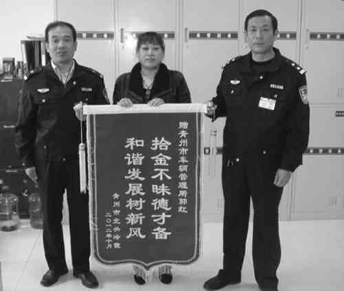 10月26日,失主王某来到青州车管所送来了一面写有“拾金不昧德才备,和谐发展树新风”的锦旗,对青州车管所民警拿拾金不昧的行为表示感谢。 刘汉昌摄