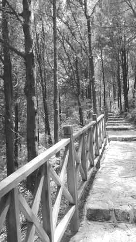 黑山也有其独特之处,上山的路,有几段修好了人行栈道。是木质扶手护栏的那种,且涂鹅黄颜色,与绿色树冠互映,行走其中心情会更加放松愉悦,这在林荫道上也算是景中有景了。