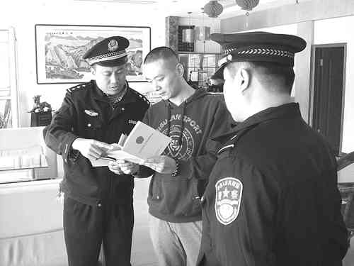 近日,风景区派出所民警到辖区酒店、宾馆等场所开展流动人口管理办法宣传。 王晓燕摄