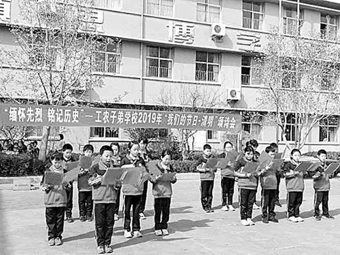 又是一年清明时,工农子弟学校举行了学校首届“清明诗会”,用一首首优秀诗作,用饱含深情的“经典诵读”,追忆过往、牢记历史、缅怀先烈,倾诉着全体师生对英雄们的崇敬和缅怀,颂扬了中华儿女保卫家园的斗争精神,表达了对先辈的思念之情和珍爱和平、开创未来的决心。这次缅怀先烈的活动,使同学们懂得心存感恩,更懂得自己所肩负的责任,不忘先烈,继承遗志。 孙凤花摄