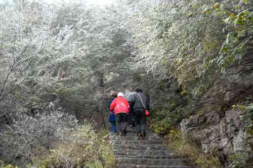 受暖湿气流和较强冷空气共同影响,11月3日下午开始到4日夜间,青州出现了雨雪降温天气。这次雨夹雪有利于冬小麦的过冬和山林防火。但气象专家同时提醒,广大市民要注意出行安全,添衣保暖,做好防风、防冻准备。图为云门山下雪场景。 记者曹健强摄