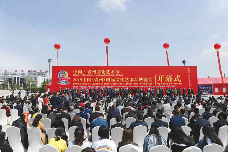 4月28日上午,以“新时代·新作为·新担当·新风采”为主题的中国·青州文化艺术节暨2019中国(青州)国际文化艺术品博览会在蓝城·中晨青州国际文化艺术小镇开幕。