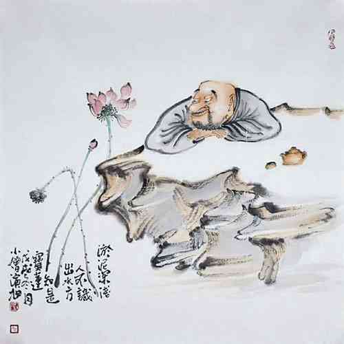 画僧演旭,自幼酷爱绘画艺术,刻苦研习书画。而后剃度于慈云寺,现为慈云寺禅画院主持。其绘画作品以静,禅为特色。以佛门视角勾勒人生,禅机风雅,意味深长。用写实传神的笔触,诠释着佛教人物内心的纯净善良。真正传播给大众的是真、善、美。仔细观摩,有佛教宏观的倾向,僧人的智慧。反映出的确是当代的人文情怀。真正用绘画弘扬佛法,正所谓,画僧为艺,且艺术涅槃,唯留绘画舍利。