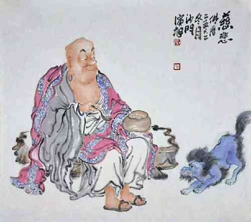 画僧演旭,自幼酷爱绘画艺术,刻苦研习书画。而后剃度于慈云寺,现为慈云寺禅画院主持。其绘画作品以静,禅为特色。以佛门视角勾勒人生,禅机风雅,意味深长。用写实传神的笔触,诠释着佛教人物内心的纯净善良。真正传播给大众的是真、善、美。仔细观摩,有佛教宏观的倾向,僧人的智慧。反映出的确是当代的人文情怀。真正用绘画弘扬佛法,正所谓,画僧为艺,且艺术涅槃,唯留绘画舍利。