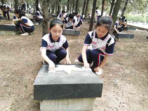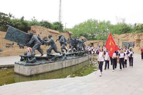 全体同学在孟良崮战役纪念碑前,聆听工作人员讲述当年军民抗战的感人情景,以班级为单位宣誓,党员教师重温入党誓词。粟裕墓前恭听革命烈士的事迹,学生代表敬献花篮,然后集体宣誓并扫墓(为墓地除草、擦拭墓碑、捡拾垃圾)。参观“沂蒙情”雕塑园,在艺术氛围中理解“兵民是胜利之本”的主题寓意。纪念馆广场唱响《我们是共产主义接班人》,感动学生心灵,激发了学生勤奋学习,决心以革命先烈为榜样,立志做好社会主义的建设者和接班人。
