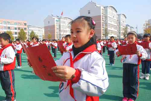 11月12日上午,青州市海岱小学的一千多名小学生在诵读《弟子规》。该校通过诵读《弟子规》、开展小孝星评选等活动,进一步激发了师生学孝、行孝、传孝的自觉性和积极性。 记者王青和摄
