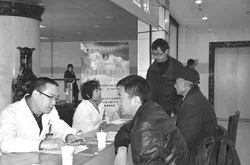 为庆祝“世界慢阻肺日”,11月15日,潍坊市益都中心医院在门诊三楼大厅举办了“关注慢阻肺 永远不晚”大型义诊和健康宣教活动,旨在进一步唤起人们主动采取措施保护肺健康的意识。期间,该院呼吸内科的专家们对前来就诊的病人进行了健康宣教和免费诊治。图为义诊现场。 耿亮摄