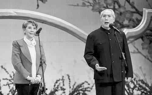 钱浩梁、曲素英夫妇在登台演唱京剧