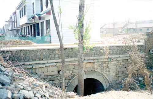 以上两种传说,刘传祥《大明衡王之死》解释为第二代衡王嫁女,作者从多年的考究认为是衡庄王朱厚燆。从古南阳城云山桥到井塘的古道遗迹,虽然现已大部分淹没在历史的沧桑中,但至今一条青石板古道还断断续续地镶嵌于河沟山坡之中,就像一条彩带,时隐时现地连接着青州古城和井塘村,且带有神秘感。2018年10月18日,为编写村志,我和李家骅主任到付家社区东北考察古遗迹时,发现一条青石板古道。听付家社区曹明顺书记介绍才知道,这就是500年前衡王为女儿修的从古南阳城到井塘村的“官道”。为此我还即兴写了一首小诗:“野埋荒草五百年,筑路深沟是有缘。王府抛球吴子中,井塘恩爱美名传。”从衡王府牌坊(午朝门)出来东行,经万寿宫街不远后南折走南门大街,不到200米过现在的阜财门(旧时阜财门内门在现在的凤凰山路北侧,外门在凤凰山路南侧,正南不远即是云山桥即南门桥)。云山桥(南门桥)位置在现逸尊海鲜酒店东侧,按这一方位推算,现阜财门和原阜财门相比,向东移30米左右,向北移40米左右。过云山桥往南走不远,大道分为东西两条。往西的路过火神庙不远即分岔,正西方向去角楼庄;西南方向去马家庄子、驼山、王坟和井塘。因衡王府到阜财门属城区,阜财门到云山桥是官道,这两段路是平坦大道。因出云山桥向西南方向非沟即山,道路崎岖难走。故青州有地方俗语:“出南门上瓜市”,似说故意绕道而行,自找费事多走远路,其实这曾是一段史实。青州府城面南当是正门,迎接官员理应由此门入城。但南门外多丘陵山地,接官亭便设在瓜市。迎上级官员须由瓜市向南,过滚水桥走北阁、昭德二街,折西进南门入青州府城。因而,从云山桥向西南方向的古道是崎岖难走的小路。听付家社区曹明顺书记说,他小时候经常走这条古道,就是出阜财门过云山桥后,沿西南方向穿过今东夷文化广场(马家庄子现古槐树西北200米左右),经大明衡王城东南角、火石山山脚北部(风景区派出所院前公路)后,西南方向过乐园果园,到达付家社区东北黑土沟东崖。这段路约1200米左右,现在古道的痕迹已荡然无存。因这段路不是接官之道,到井塘古道,我猜测最早可能从出南门桥开始修起。还可能是从正西方向去角楼庄,西南方向去马家庄子村分岔后修起。再次是到黑土沟东崖修起,因从这里开始下沟就非常难走了。从黑土沟东崖顺坡下到沟底就看到古道石基。经沟底东侧南行不远是老牛沟(交汇处),在此过沟向西南爬坡,10余米后隐隐就看到1.7米宽,近100米长的青石古道,爬上西沟就是万佛塔到双贝体育公园的公路。跨过公路向西南方向,经一片果园到付家社区东北角,从社区最后一排房前向西过付李公路,沿付家社区居委会房后一条小巷(巷西有一古井)向南走,不远处东侧是菩萨庙,再往南小巷两旁有10余棵树龄都在几百年以上的枣树。出社区再走400余米西南向小道到达一条深沟,崖深30余米不能行。听曹明顺书记讲,原古道由此下坡后沿河道东坡南行近200米就到转云桥(在悬崖上就看到转云桥),但由于河水改道东移,冲毁原来下坡及古道,造成今天深沟悬崖无法通行状态。绕道走近转云桥,桥体依然十分壮观。听吴美庆说,衡王在从南门桥到井塘的路上修的第一座桥就是转云桥,亦称“云门桥”。相传,衡王府郡主下嫁于井塘村,为使其往来方便,王府专修转云桥,跨山涧,桥两端皆为石板铺路,早年为南阳城通西南山区必经之路。明嘉靖《青州府志》对转云桥的记载是:“在青州府治西南七里,云门山西麓畔,有沟幽邃,上通黄龙涧,下抵漏溟河。”民国十三年(1924)残破的转云桥得以重建,桥高6米,单孔跨径4米,孔高5米,桥长20米。1958年,道路改线后,转云桥逐渐弃用。1971年山洪暴发,冲毁两端引桥,桥身巍然不倒,至今犹存。明嘉靖《青州府志》是明嘉靖四十一年(1562年)至四十四年(1565年)编纂的,上有转云桥的记载,这说明转云桥早在嘉靖年间已经存在。朱厚燆明嘉靖十九年(1540)袭封衡庄王,明隆庆六年(1572)薨。朱载圭明万历三年(1575)才袭封衡康王。据此推算,转云桥应是朱厚燆修的,衡王嫁女到井塘的衡王应是朱厚燆。以此类推,出南门到井塘的官道修筑时间应在明嘉靖年间。在转云桥南端10余米就看到石铺古道,从此沿沟西坡向南经祖家庙村东沟西岩,直通倪家村、朱家村南北中心大街。其间,青石板古道断断续续时隐时现,宽度形状和黑土沟古道基本相似。出朱家村南北中心大街既是云驼公路,跨过云驼公路经朱家村西沟东沿向南,经王家社区古庙西侧继续南行,过一片果园到达王家社区西南角与下逄路交汇处左侧分岔。一条是上王坟的路,另一条过下逄路,沿母牛岭前山坡向西200余米过摩岭庵山口,再走1000余米到达张家峪新村。从村口顺公路向南200米直通张家峪老村南北大街北头,由此上坡后,街东侧有颗老槐树,也叫公主树。再向南不远就见不足200余米长的石铺古道,最窄处1.4米,多数在1.78米,最宽处约2米。到达南头拐弯,拐角处原有一颗古槐,向西50余米后向南拐折,拐角处原也有一颗古槐。听张传宝说,两颗古槐比现在村北古槐还要粗。向南50余米后下沟,走沟底向西不到100米就是衡王在此路上修的第二座桥。桥不高,也是双孔。张传宝老人讲,原桥很窄不能通车,后来在桥东北面加宽。桥西南面保持原样,看上去建筑很粗糙,至今仍然很坚固。过桥后顺西南方向爬坡50余米后到达西角子岭(