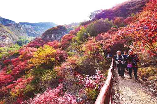 金秋十月,山峦如画,层林尽染,正是登高望远,观赏红叶的最佳时节。青州市庙子镇圣峪口村天赐山景区的红叶,以其独特的山势、宏大的规模和宜人的风景吸引了众多游人争赏红叶,成为一道亮丽的风景线。 沈志海 郭风海摄