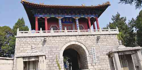 下了山,已是申时,站在驼山牌坊外,再看驼山,丹柿点缀在驼岭的翠绿中,真是“斜阳十月沐秋风,叠翠流金映碧空。”正是驼岭的醉美,使我更加深了对“驼岭千寻”的理解。为什么驼山又称“驼岭千寻”哪?现在青州网络媒体的解释是:“位于青州城西南的驼山,遥望此山若俯卧的骆驼,叠翠千寻,故名驼山,”意思是驼山的林木青翠重叠千寻。清道光十一年重修昊天宫泰山殿、圣母店、大门、二门、戏楼记碑载:“云门之西,层峦耸翠,蔚然起于苍莽之中,驰奔云矗者,有驼岭,蜿蟺扶与,磅礴而郁积,古以千寻为称焉。”我认为这是对“驼岭千寻”最好的诠释。“寻”,古以八尺为一寻,“千寻”在古文中一般不说是多少尺,是形容极高或极长。如王安石《登飞来峰》:“飞来山上千寻塔,”绝不是说飞来山上的塔高2500米;云南大理县城西北的千寻塔,为十六层砖塔,包括塔刹通高不足70米也称千寻塔。驼铃千寻既然是说驼岭叠翠千寻,叠翠千寻就是层层重叠的翠绿有千寻高的意思。明代李本纬诗《驼岭千寻》:“迭翠三千尺,埋云十二盘,”三千尺是千寻的替代说法。清代李焕然诗:“楼阁千寻上,群山此最尊,”是说昊天宫建在千寻之上,如果实指2500米,那么昊天宫将在驼山之上2100米处。这次来驼山,最大的收获是通过实地察看驼山,对其有了更深层次的认知,它让人流连忘返,它使人陶醉,它更使人浮想联翩:“昊天宫上白云飞,驼岭千寻正翠微。横亘龙腾欢乐舞,卧盘驼起欲争晖。” (高树贞)