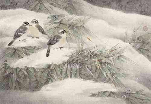 《寒竹添雪》65x45cm 2019年