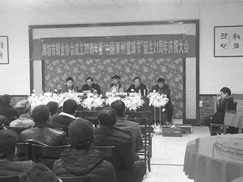 11月24日,来自潍坊及淄博、临沂、东营等地的近300多名蜂农代表们冒雨集聚青州市王坟镇,参加潍坊市蜂业协会成立30周年暨庆祝中国蜜蜂节诞生21周年庆祝活动。青州市王坟镇蜂业协会理事长尹居录向蜂农们介绍了今年的蜂产业发展情况,与各地蜂农们分享了科技养蜂与打造健康产业的美好憧憬。 据了解,临朐县已成为山东省蜂产品原料和产品加工集散地,11月获得中国蜂产品协会授予的“洋槐蜜之乡”荣誉称号;青州市人民政府被中国养蜂学会授予“优秀蜜蜂之乡”荣誉称号”。 郭庆滨摄