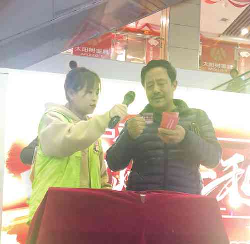 工作人员帮助顾客查看中奖码