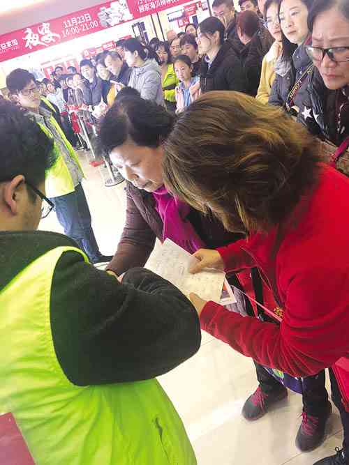 热情的市民排队登记领取奖券