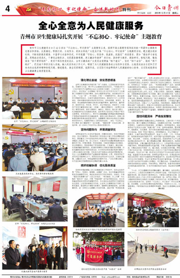 青州市卫生健康局自9月12日启动“不忘初心、牢记使命”主题教育以来,按照市委主题教育领导组的统一部署和主题教育总要求和目标,认真谋划、积极行动、主动作为,组织全系统广大党员开展“不忘初心、牢记使命”主题教育活动,建立健全组织机构,不断创新教育载体,丰富学习内容和形式,牢牢把握“守初心、担使命,找差距、抓落实”的总要求,紧扣“理论学习有收获、思想政治受洗礼、干事创业敢担当、为民服务解难题、清正廉洁作表率”的目标,坚持学习教育、调查研究、检视问题、整改落实“四个贯穿始终”,党员干部思想受到洗礼,全市卫健系统广大党员自觉增强“四个意识”,坚定“四个自信”,做到“两个维护”,把忠诚干净担当植入灵魂、融入到具体的工作之中,增强了为人民健康服务的主动性和自觉性。以高度的政治自觉和刀刃向内的自我革命精神检视问题、推进整改,拿出实招硬招,挂图作战,以实际行动诠释维护人民健康的初心使命,以实际成效推动卫生健康事业高质量发展。