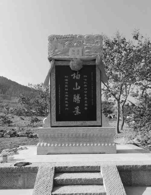 五松园迎客碑的碑记,是知名作家刘沂生先生的杰作。碑联“群峰起舞峭壁巨寿名齐鲁,松涛作歌柏山胜景靓古州”,恢宏大气,掷地有声,高度赞美了柏山的靓丽景色。