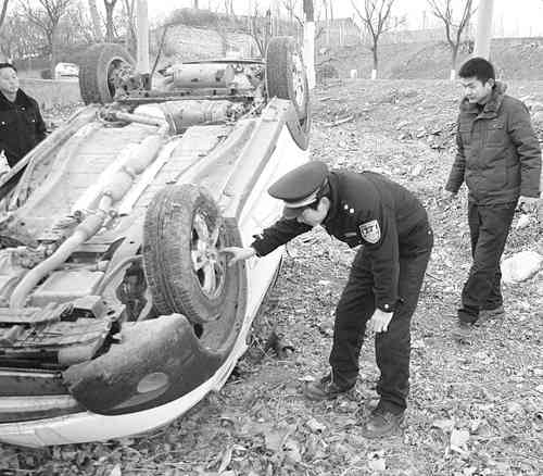 12月18日下午,在博临路王坟段,4名青年酒后驾驶一辆无牌新轿车撞到路边的杨树上,随后车子冲入沟下,车基本报废,4人都受伤。 高传林 李传林摄