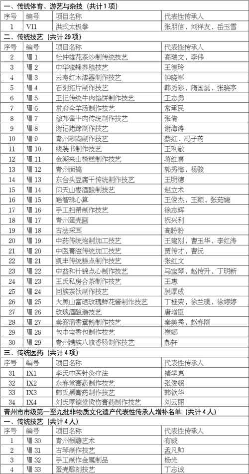 第十批青州市市级非物质文化遗产保护名录