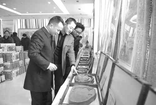 1月1日上午,“迎新春 庆元旦”青州市红丝石、红丝砚、书画展举行,来自全市的红丝石、红丝砚、书画爱好者近百人参加了展览。上百方红丝石、红丝砚,上百幅字画让前来参观的人们在节假日享受到精美的文化大餐,受到人们的一致称赞。 记者曹健强 通讯员沈志海摄