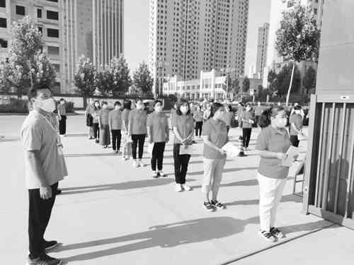 演练中,“学生”保持2米间距有序入校。校门口设置检测通道、备用通道,每个通道配备专人进行体温检测和消毒。入校时一旦发现体温异常学生,由专人将异常学生带至留观室,立即启动疫情防控应急预案。“学生”进入教学楼后,在教室门口进行二次测温后进入教室。上课期间出现体温异常情况,由班主任将其转移至留观室进行体温监测、登记报告、隔离观察,按照应急预案规定处理。 教轩摄