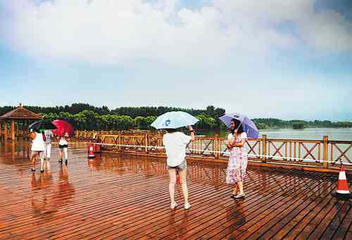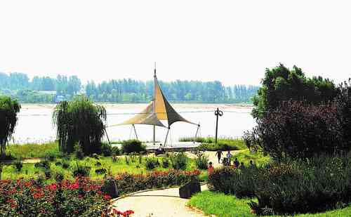 第二天一早,同学们一起来到了弥河畔的弥河文化旅游度假区。一走进大门,几辆旅游车已经等在了门口。开车的司机是一个皮肤黝黑的中年人,热情的招呼着:“来自全省各地的老师,欢迎大家再次回到青州。我们的生态园面积很大,需要大家乘车游览。”言语间充满了自豪。旅游车行进在绿荫下的柏油路上,司机自豪地为我们做起了解说员。“这个生态园是我们建的,占地370公顷,分为蔬菜博览区、林果绿洲区、花城菜都区和水上游览区。是一个绿色的休闲长廊。”车行进在绿洲区,这片是繁花似锦,那边是小苗才出头;这片是古树苍郁,那边是小树齐齐;这片是小桥流水,那边是山石玲珑。来到这里不必担心错过佳期,一年四季,这里都有风、有景、有发现。