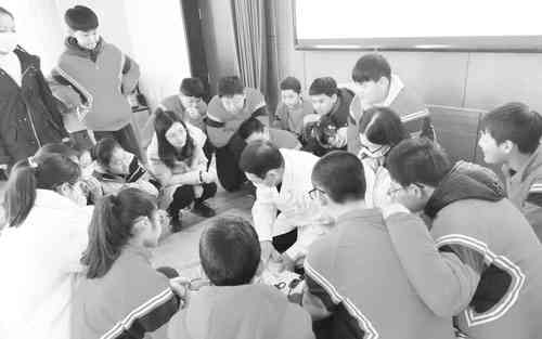 12月22日上午,青州市人民医院“爱在你我身边”志愿服务队成员一行7人,走进云门山回民学校,向师生们志愿推广心肺复苏术。 在活动现场,医院领队刘其平介绍了掌握心肺复苏术的意义,现场向师生讲解操作步骤,让孩子像背诵古诗一样,把要点牢记于胸,并现场做了操作演示。 随后,师生们轮流走上讲台,医院志愿者手把手地教他们实践。大家学习热情高涨,通过实际操作掌握了一门救人的技能,种下善的种子。 王和平 丁囡囡 丁园园摄