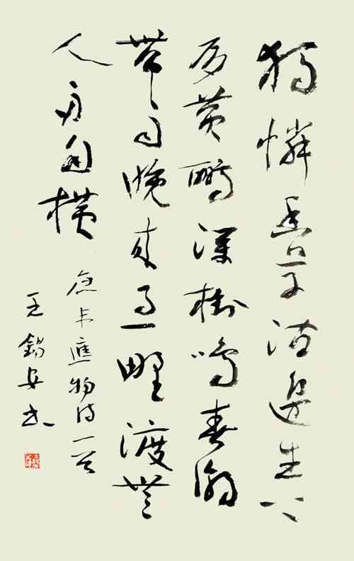 大家都知道王先生章草写得好,但我们一定要认识到他“章草大厦”中的钢筋更重要——今草,是他章草不滑向野路子的重要秘密。也是今日许多不识“唐法”、“晋韵”的人写章草出不来的重要原因。即是不识章草的后代为何物!我们取法乎上,但更多的时候还要取法乎用,看看王先生今草再理释他的章草,心里和审美上这座桥就有了。