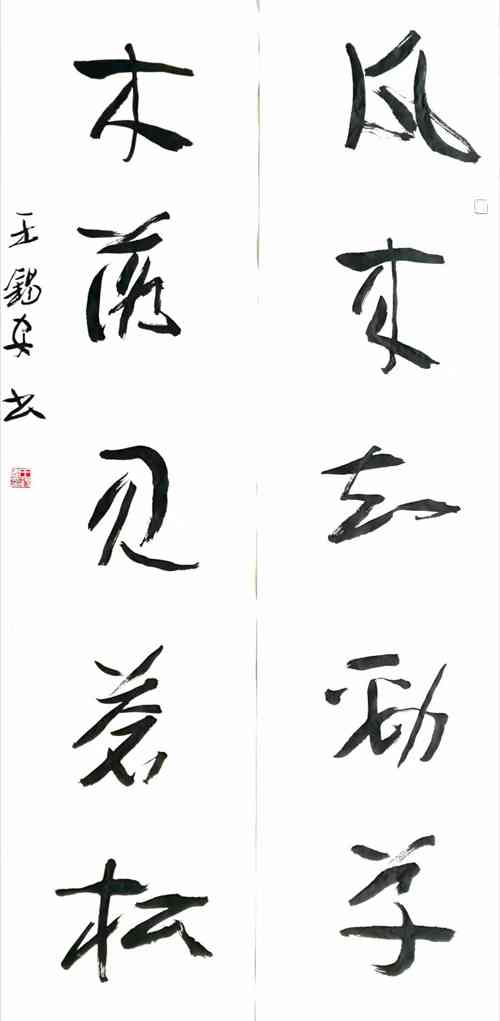 书法不难在精工,而难在脱俗。要进入自我境界是相当难的。王锡安先生能有今日之成就,和他专业的真诚研究是分不开的。他的章草对联、六条屏得到了许多专家的首肯,其草书在规范中透出清逸和苍拙,与“无诗亦是仙”的境界形成了某种共鸣。而“朴”、“清”则是诗仙之境的特定内涵,又是主要的外部表现形式,才能上升到一种美学境界。艺术家的努力,挥洒是绝对的。无限长河中争取较多是相对的,“朴”与“清”的追求是无涯的。