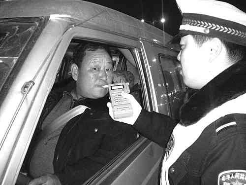 3月11日晚,一名交警正在用检测仪为一名驾驶人员检测是否酒驾。“两会”期间,青州交警大队全面启动治安防控安全检查,加强排查安全隐患、堵截、查控、巡防工作。 崔永军摄