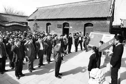 清明节来临之际,山东省青州市高柳镇组织党员干部、教师学生5000多人到段村烈士祠重温入党誓词,参观烈士事迹,回顾青州市北部党组织的发展史,进一步领略了革命前辈的光辉形象和英雄风采,感受了先烈们为祖国奋斗不息的无畏精神。 段村烈士祠位于高柳镇北段村,祠内供奉着648位革命烈士的英灵,2009年镇政府投资120万元对烈士祠重新进行了整修,是潍坊市级文物保护单位、青州市党员教育基地。 王立平 赵加林摄