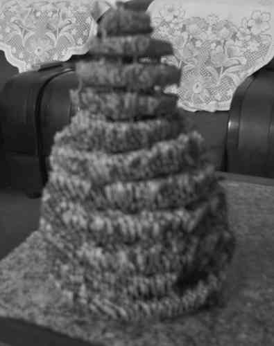 王坟镇后黄马村的村民赵先生下地干活时,在“岭南”山沟里发现柿子树上有个蜂巢,于是就把它取回家。这可是个稀罕物,它有11层高,底部直径40厘米,高50厘米,蜂巢形似宝塔,一层比一层小,顶部是一个圆球形状,周围如镶嵌上了无数个白珠子,造型美观,可谓巧夺天工,具有较高的观赏价值。 传林 英华摄