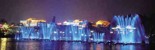 夜幕降临,站在南阳桥上,夜观城区风光,这里的美己经达到了无法形容的境界。灯火通明,每一个地方都闪耀着灿烂的光芒。在这五彩斑澜的灯光里,南阳河也“沸腾”起来了。河中的音乐喷泉是主角,流光溢彩,变幻着各种造型,演绎着古风古韵与现代科技相结合的华彩乐章,绚丽多彩的景象让从各个方向赶来的市民看得如痴如醉……夺目、壮观!