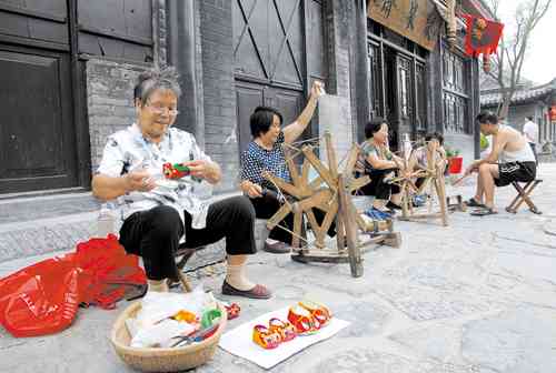 做虎头鞋、纺线