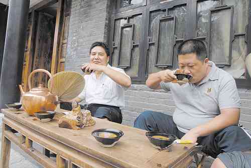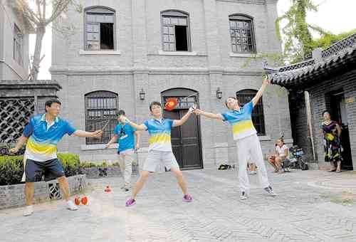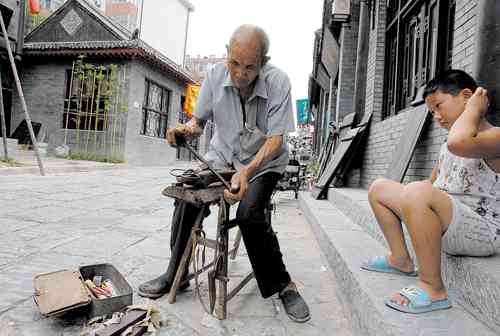 做虎头鞋、纺线 扎风筝 打更 锵剪子、磨菜刀 大碗茶 踢花毽 抖空竹 为还原青州古城的风土人情和悠久的历史,青州市精心打造的“古街游”于近日在北门里大街展开。原古青州的抖空竹、大碗茶、虎头鞋、纺线、打更、锵剪子磨菜刀、踢花毽、推木轮车等十余种古代生活场景展现在市民及游客面前,吸引了大量游客前来观赏。 记者曹健强摄