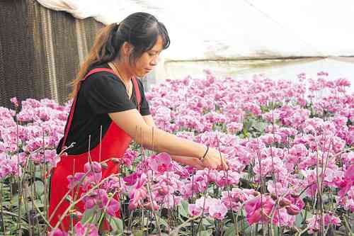 花博会临近,走进花农的棚区,是一片繁忙的景象。宽敞明亮的大棚中规模化种植,科学化管理,并安装有风机、空调、加湿器等各种设备来创造出适宜花卉生长的环境。传统的蝴蝶兰、凤梨、红掌争奇斗艳,培育的花卉新品种——带香味的蝴蝶兰更是让人眼前一亮。图为花农正在认真地整理蝴蝶兰,为花博会做准备。 刘铠铭 赵振晖摄