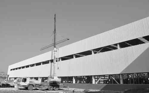 云内动力年产30万台发动机项目是全市重点工业项目。该项目开工建设以来,项目方和施工单位严格按照设计要求,制定详细施工方案,将车间主体和土建工程分成5大片区,采取倒排工期、分级包靠、轮番作业的方法,压茬施工、全线推进,目前6.9万平方米的大型车间已全部完工,进入内部装饰阶段,设备基础已建成80%,10月中旬进行设备安装,年底将实现投产达效。图为项目车间正在进行顶部护板安装。 平萍 王福涛 谢文朋摄