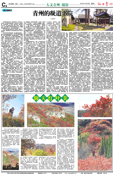 摩云崮,一如一个健壮的男子,稳稳地站在那里,头顶蓝天,眼望大地,守护着仰天山的美丽,生怕别人抢了去。崮下,山脊上,山沟里,一棵,一簇,一片,像一个盖着红盖头的新娘,像一块喜庆的红包袱,像大地铺上了一张热烈的红毯,这是谁家要娶媳妇吗?