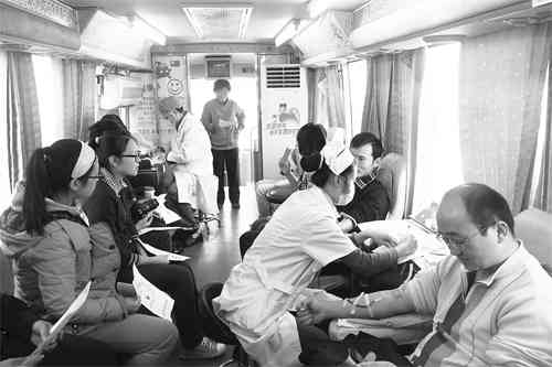 11月5日上午,山东国程置业大福地有限公司组织了一场无偿献血活动,公司员工积极响应,纷纷挽起衣袖,投入到献爱心的行动中来,大家表示,要尽微薄之力,为社会增添一份爱心,其间,共有46人完成志愿献血,献血量达11000毫升。 记者郭庆滨摄
