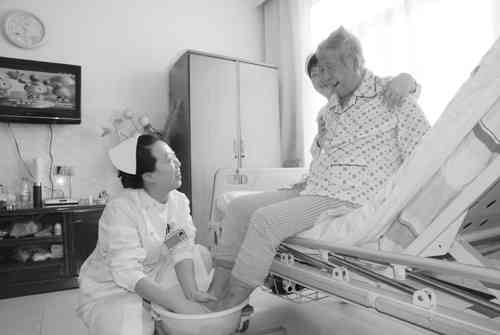 上午9点,在保健老年病科病房,护士正在给患者做生活护理。她们周到的服务让陪床的家属称赞不已,而该科护士长于艳丽却表示说,这是她们应该做好的工作。她说,“把工作做规范、做到位、做到最好,这是我们一直的要求。在创三甲中,大家更加自觉,把应该做的工作做到更好,力求进一步提升服务质量,为病人提供更好的服务。”
