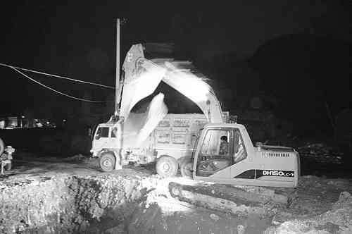 11月13日,王坟镇钓鱼台水库下游6公里的护村坝工程正在如火如荼的施工中,这项工程自钓鱼台水库至涝洼村,全长6公路,河道24米宽,河道底全部用石块加水泥浇灌,铺成60米长一块自高而底平河道,是一项实实在在的民心工程。 李传林摄