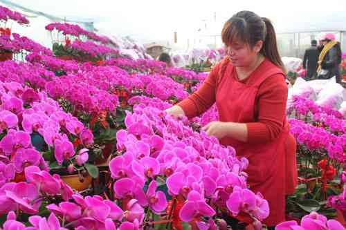 在众多的年宵花中,蝴蝶兰一直深受消费者的喜爱,连续多年排在年宵花畅销榜的首位。随着春节临近,青州年宵花进入销售旺季,蝴蝶兰上金玉满堂、花开富贵、金麒麟、金星元宝等各种吉祥喜庆的花名被做成小红卡片挂在枝头,吸引不少顾客驻足挑选。 据了解,青州蝴蝶兰的引种栽培始于上世纪末,在不到十年的时间里,种苗生产技术日趋成熟,市场体系日渐完善,经营方式大步向产业化发展,青州现已成为江北最大的蝴蝶兰生产、销售基地。图为种植业户正在悉心打理蝴蝶兰。 刘铠铭 赵振晖摄