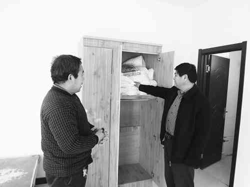 日前,何官镇南小王村投资建设的独门独院老年公寓完工,村里28户65岁以上的老年人以家庭为单位免费入住。 为让老年人住的顺心、温馨,房间按照两室一卫、一厨60平方米设计,外带一35平方米的小院,雪白的墙壁,光洁照人的平整大理石地面,设施完备的卫生间,太阳能、床、电视、吊灯、壁柜、茶几等配套设施样样俱全,就连棉被、床单和小院里的养花池都备好了,图为搬进新居的张大爷正在和村书记孙国贞热情交谈。 记者郭庆滨摄