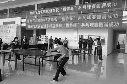 由青州市总工会、青州市飞达实业集团等主办的“飞达汽贸福特杯”乒乓球大奖赛于4月29日鸣哨开锣。大赛除省内70个代表队,另有2个来自朝鲜的代表队,是我市历年来规模最大、参赛队伍最多的一次乒乓球比赛。据了解,比赛历时3天,冠军获得长安汽车一辆。 记者孙敏摄