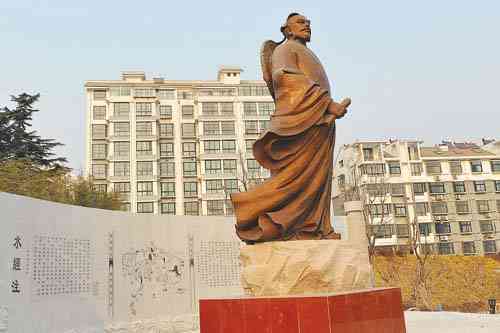 青州在南阳河畔建成一座5米多高的郦道元铜像。郦道元,北魏地理学家、散文家,有《水经注》四十卷。